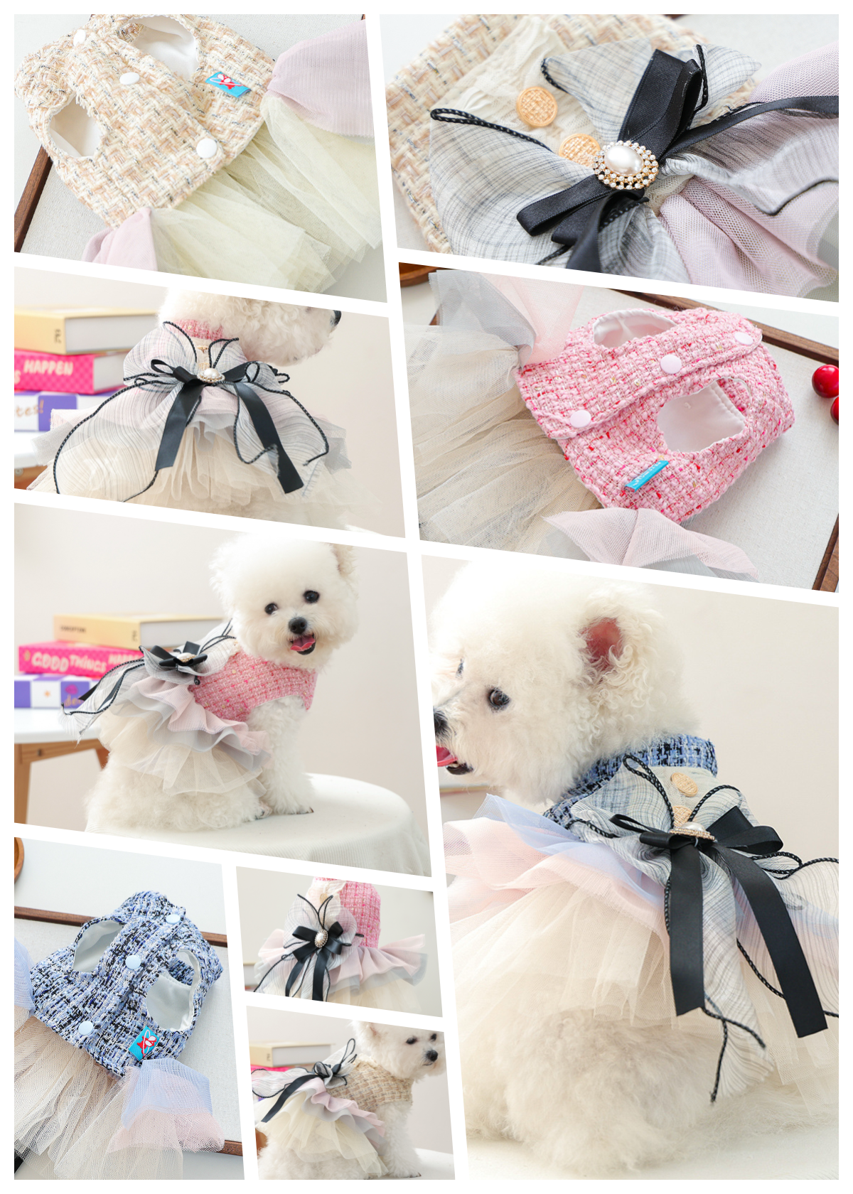 Bellepaw Classic Tweed Chic Pet Outfit with Pearl Bow – Luxury Tulle Skirt for Small Dogs & Cats